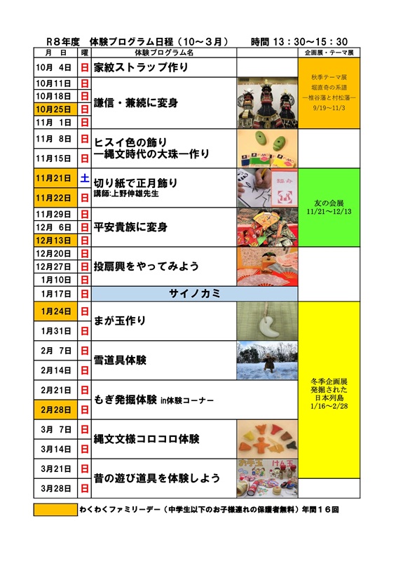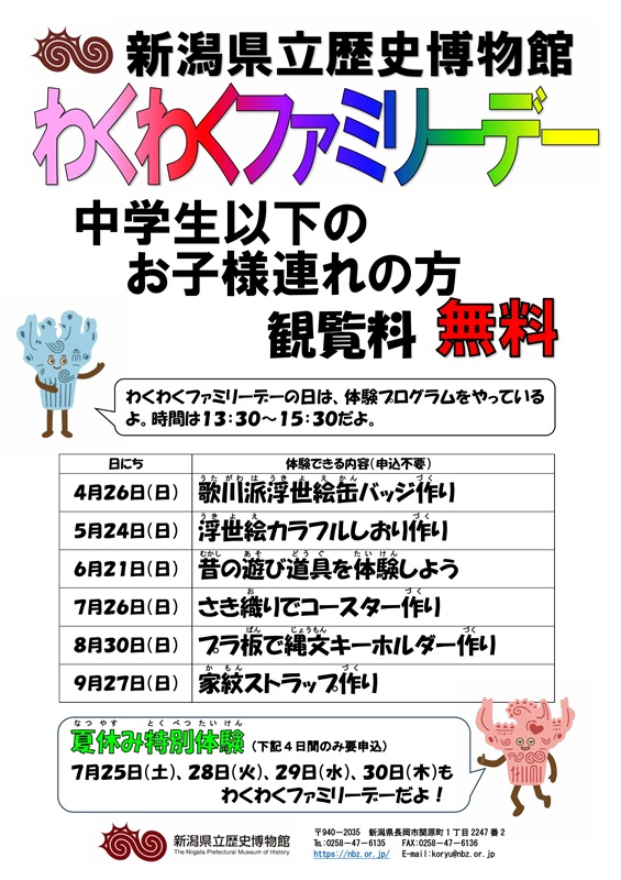新潟県親子ふれあいデーの事業の一環で、当館では毎月「わくわくファミリーデー」を開催します。