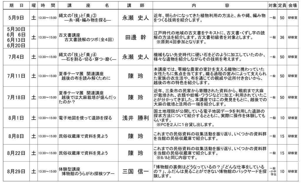 令和8年度新潟県立歴史博物館 前期講座一覧・申し込み書(Excel)
